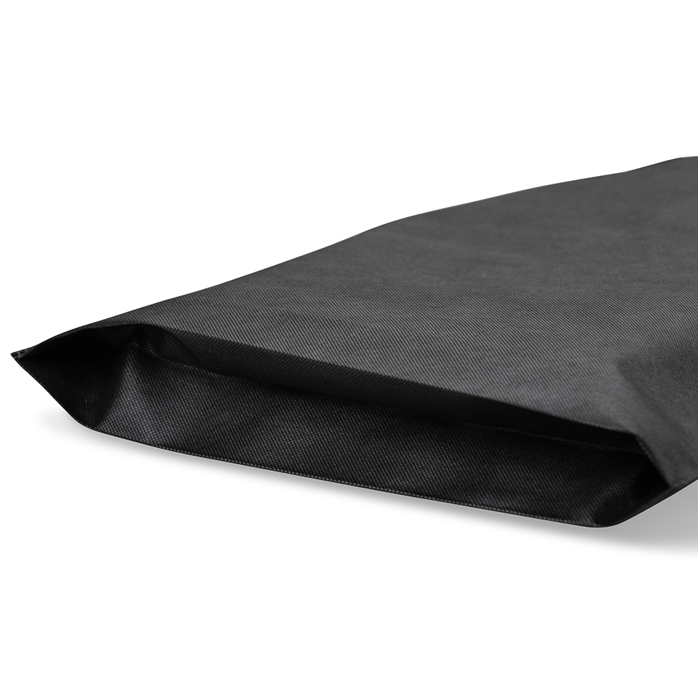 Sacola colorida com alça em material TNT, possui símbolo ecológico/reciclável na costura da alça.