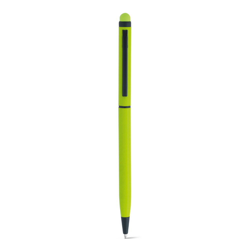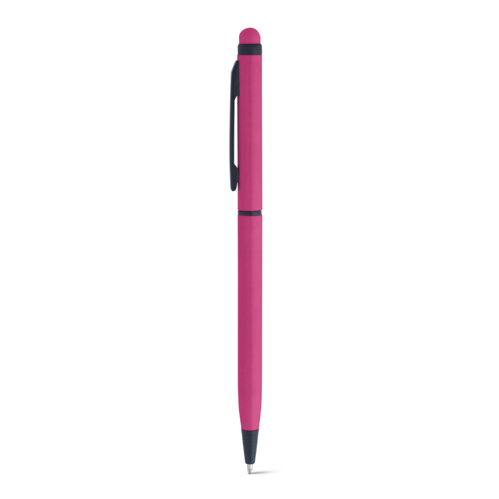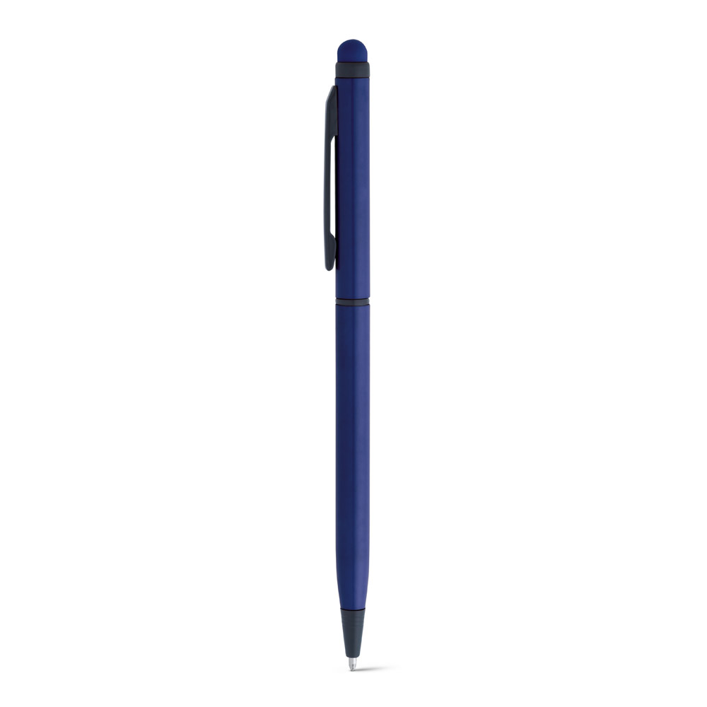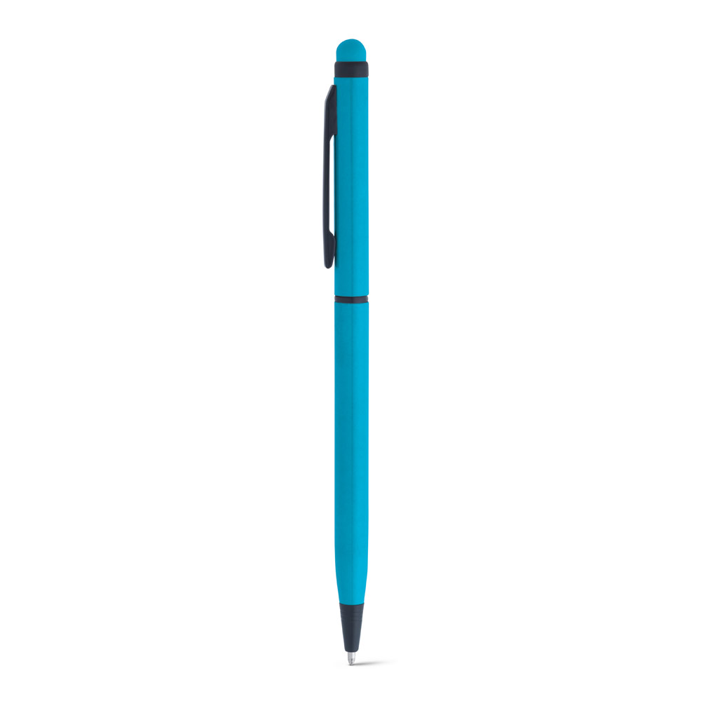 Esferográfica em alumínio com mecanismo twist, clipe e ponteira touch. ø8 x 137 mm