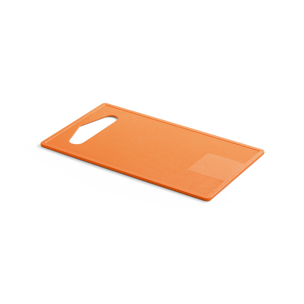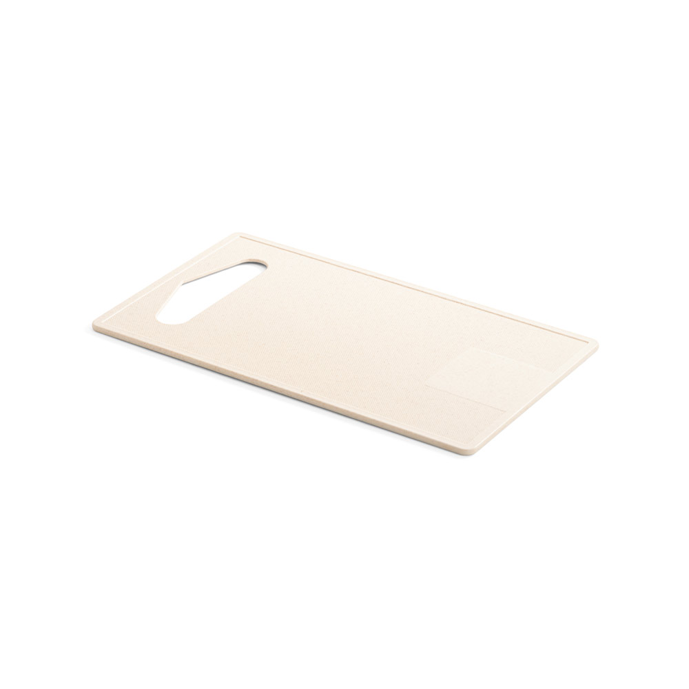 Tábua de corte em fibra de bambu (50%) e PP (50%). Contém um quadrado liso no fundo da tábua, adequado para a personalização. Food grade. 237 x 140 x 4 mm