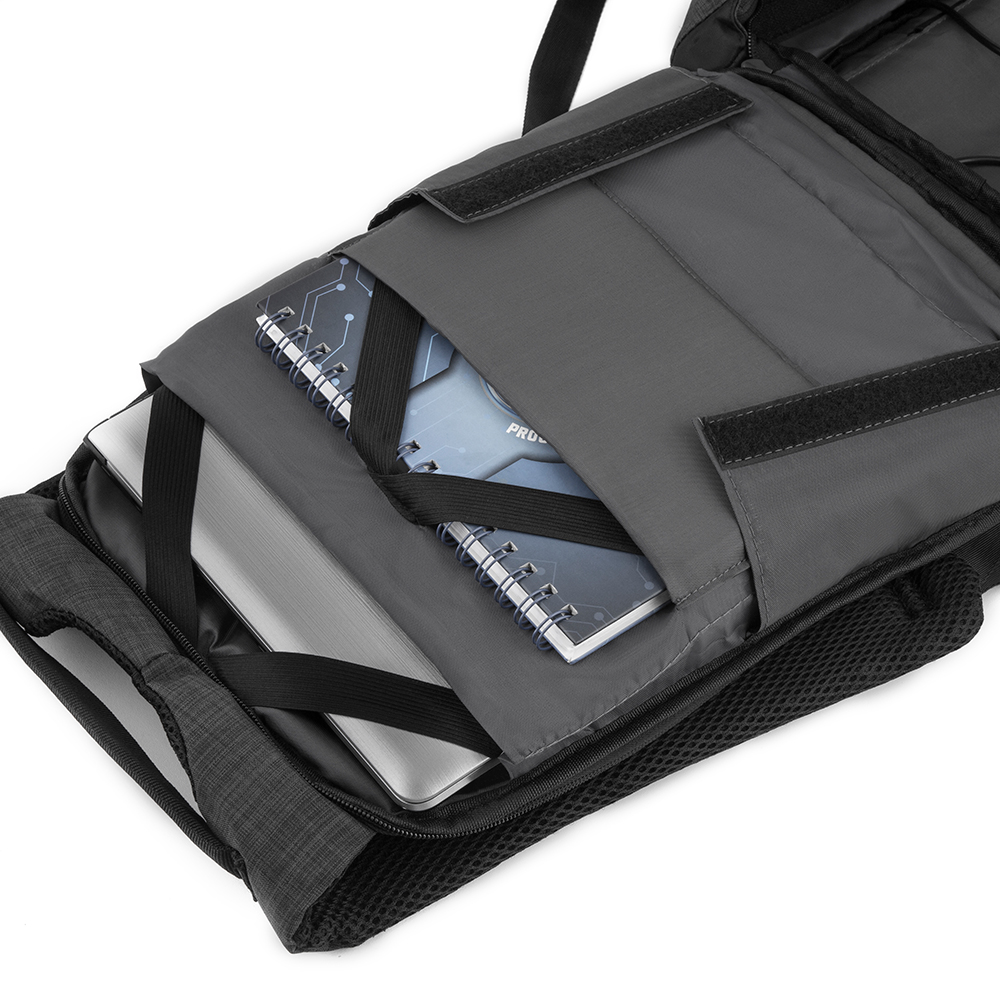 Compartimente acolchoado p/ notebook, 33x25cm. Cinto elástico nas repartições internas.