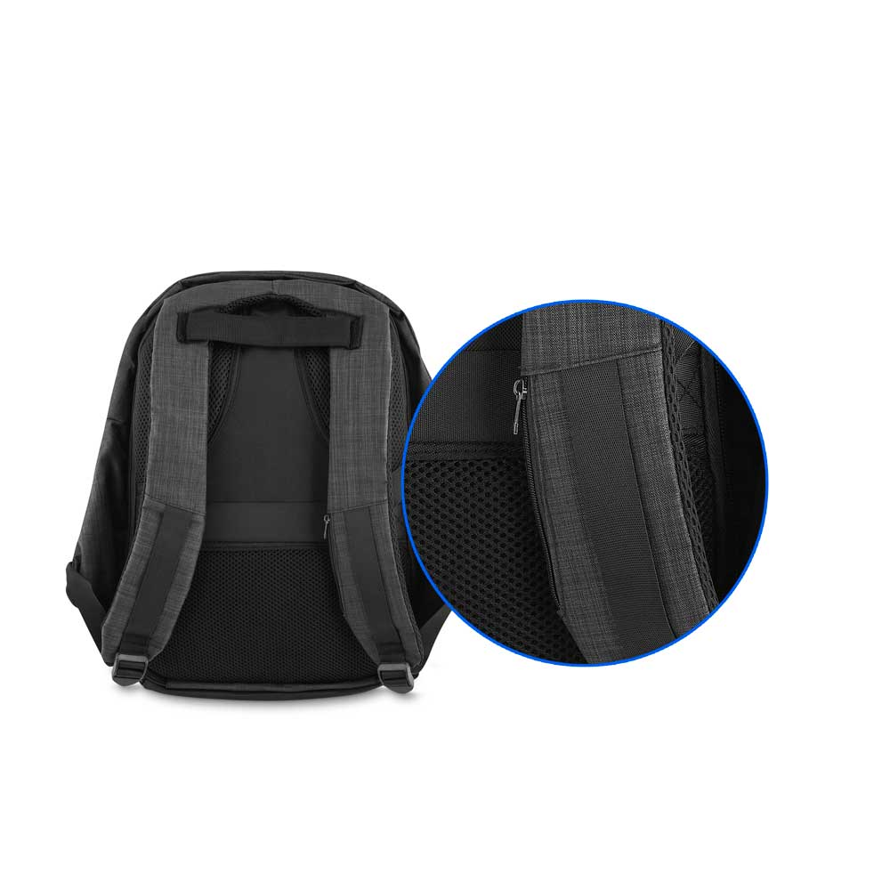 Um mini bolso com ziper na alça de ombro, ideal para dinheiro e cartões.